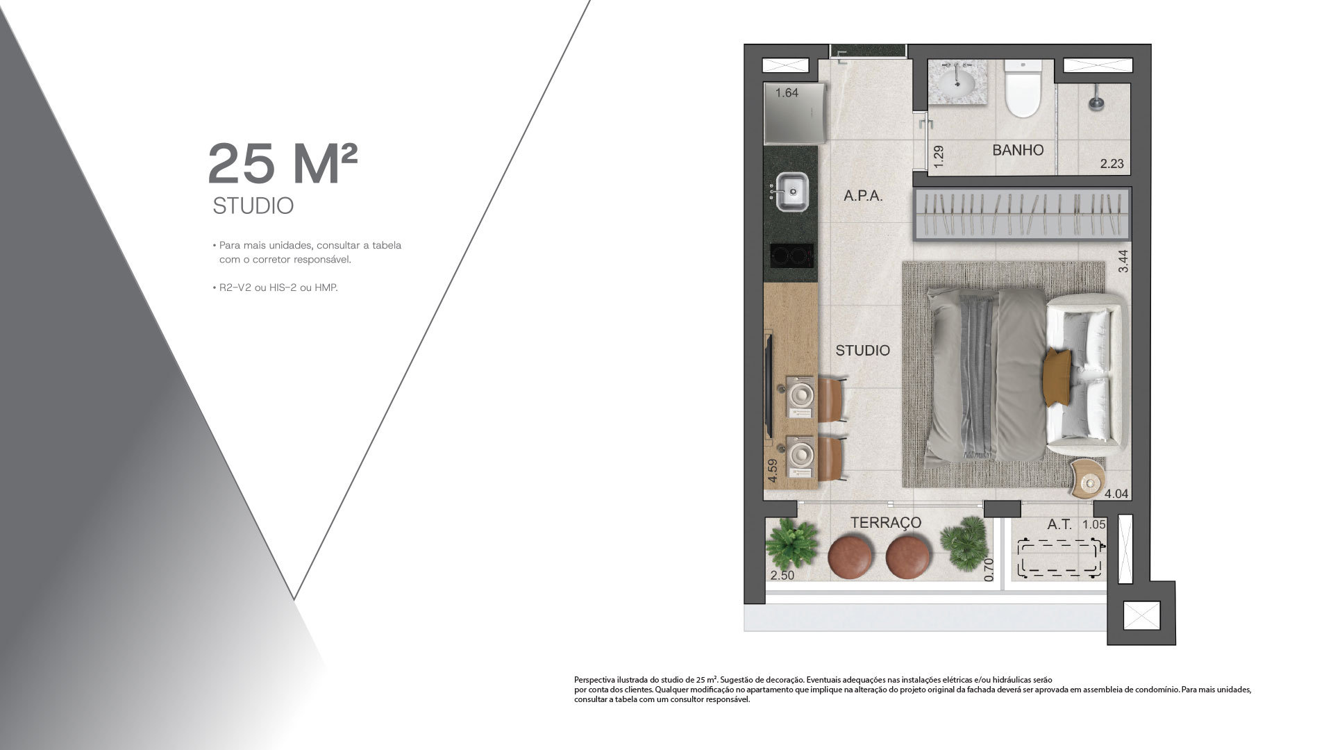 O empreendimento possui unidades aprovadas como Habitação de Interesse Social (HIS-2) e Habitação de Mercado Popular (HMP). HIS 2: renda familiar mensal até 6 salários-mínimos; e HMP: renda familiar mensal até 10 salários-mínimos. Para os adquirentes não enquadrados na renda familiar mensal acima, a obrigação será de destinação da unidade para o público enquadrado, via locação, sendo que as locações deverão respeitar o limite máximo de 30% da renda prevista acima.