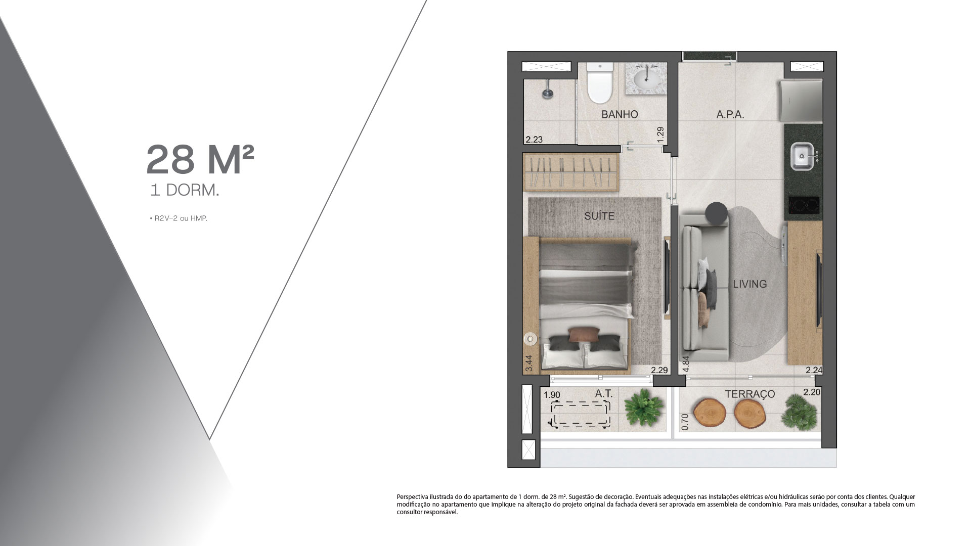 R2V, conjunto com mais de duas unidades habitacionais, agrupadas verticalmente em edifícios de apartamentos ou conjuntos residenciais verticais com áreas comuns. As unidades R2V-2 não possuem nenhum tipo de restrição quanto a valor de venda, compra e locação. Não possuem também restrições quanto ao perfil de cliente (moradia ou investidor), seja Pessoa Física ou Jurídica e a quantidades de unidades a serem adquiridas.